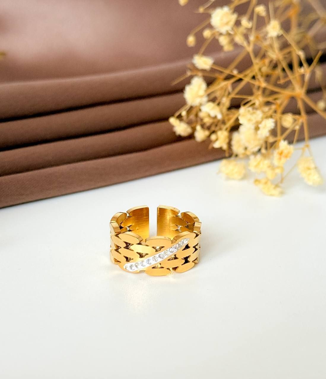الخامة: ستانلس ستيل مطلي بالذهب عيار 18 + زيركون